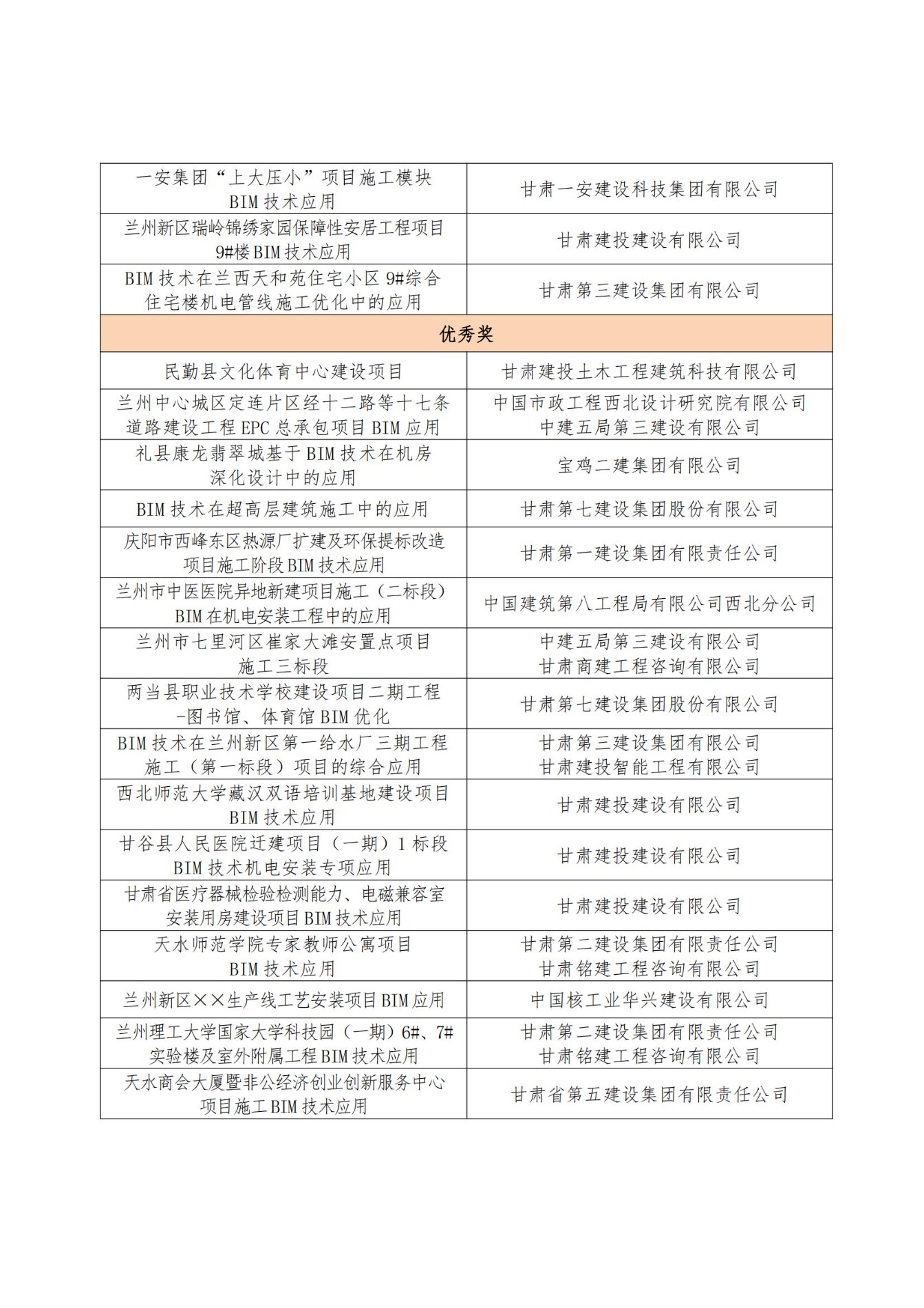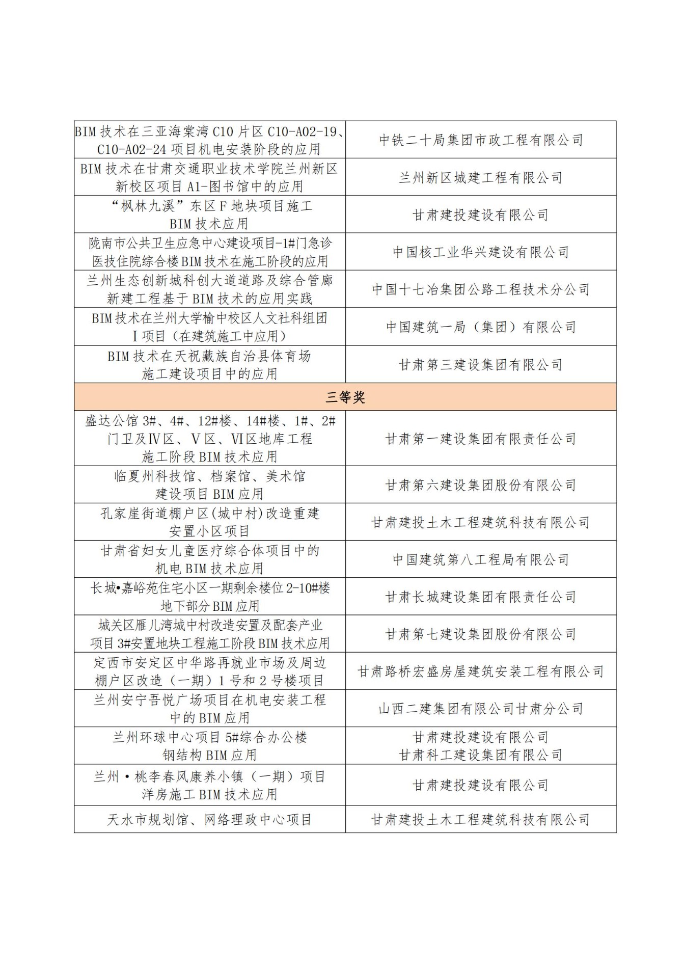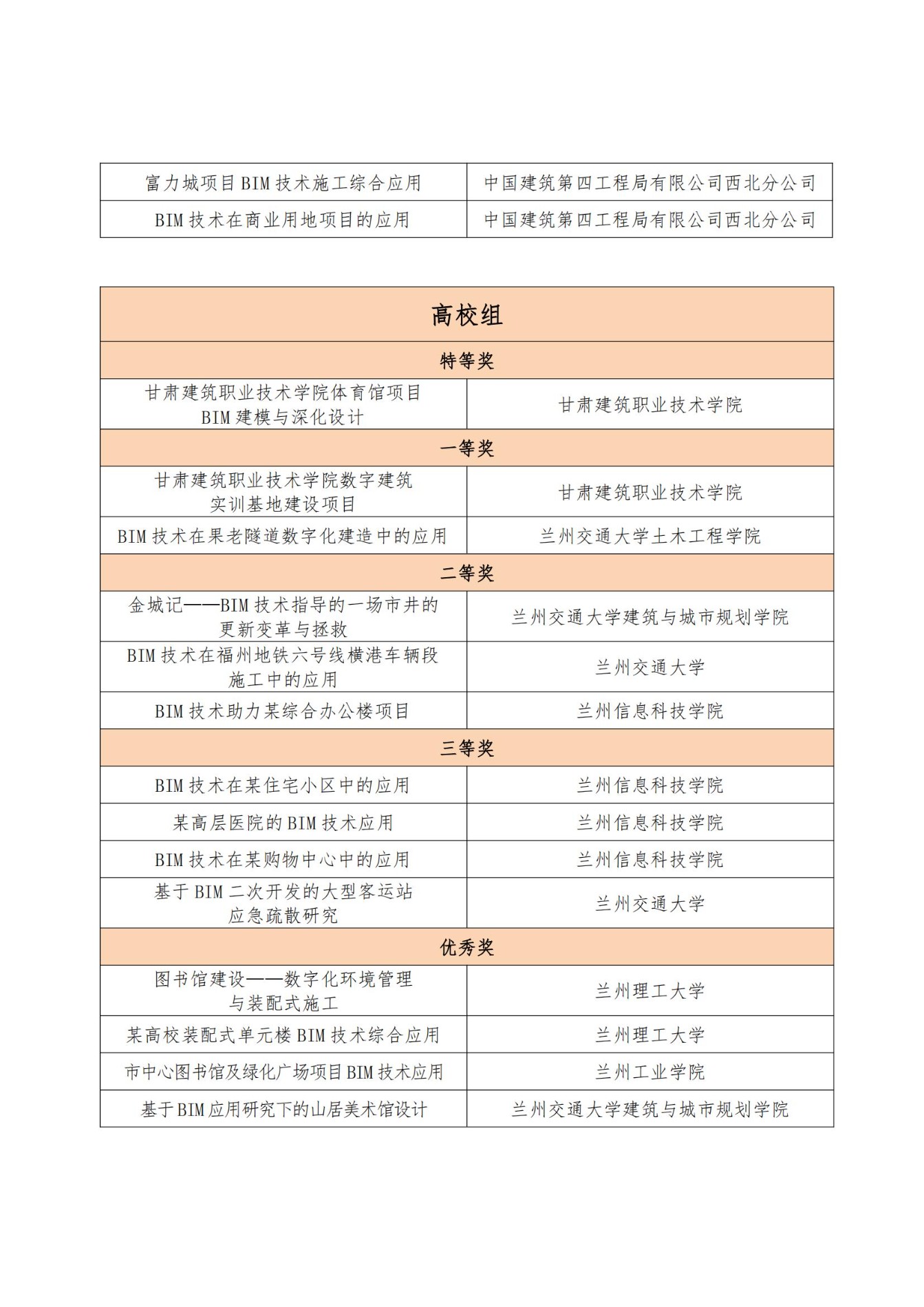 关于公布 2021 年甘肃省职工职业技能竞赛“BIM 技术” 省级二类决赛暨甘肃省第四届 BIM 技术应用大赛 获奖名单的通知