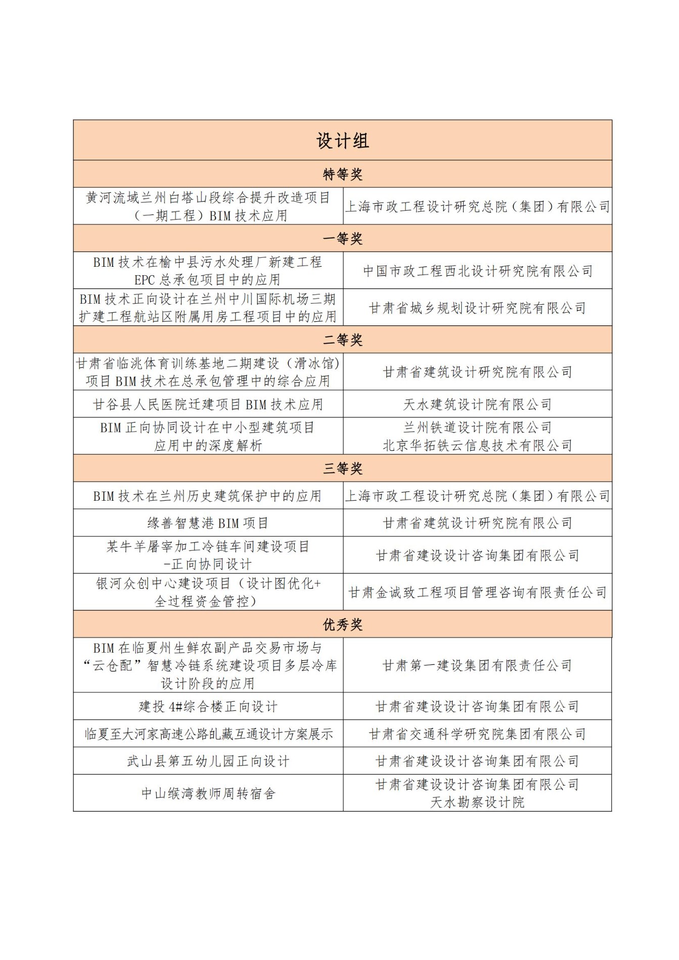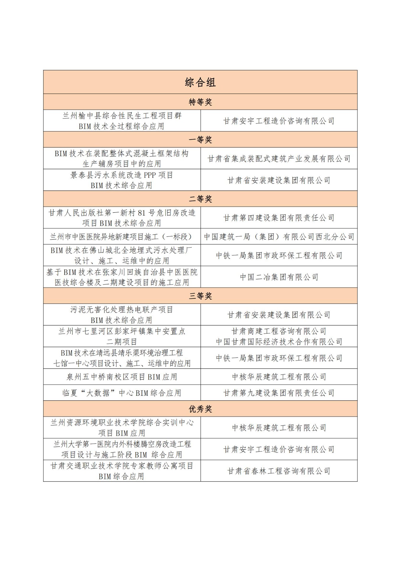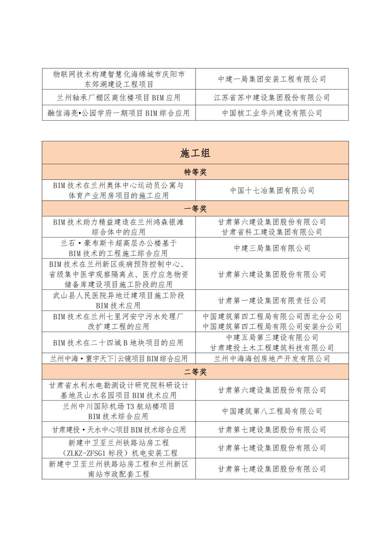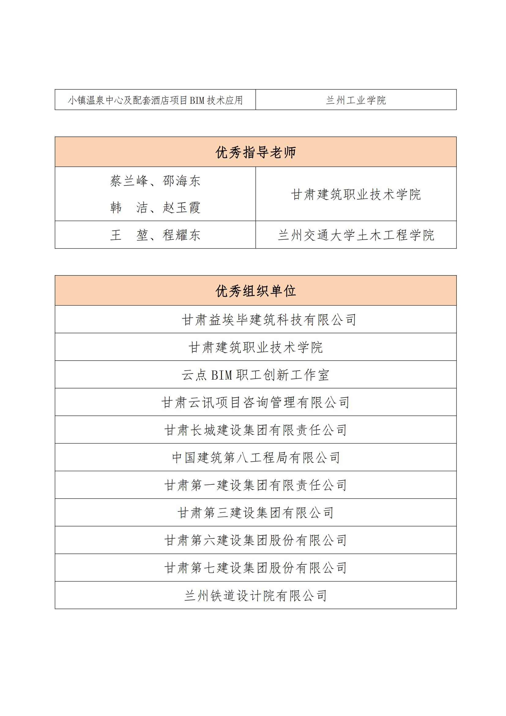 关于公布 2021 年甘肃省职工职业技能竞赛“BIM 技术” 省级二类决赛暨甘肃省第四届 BIM 技术应用大赛 获奖名单的通知