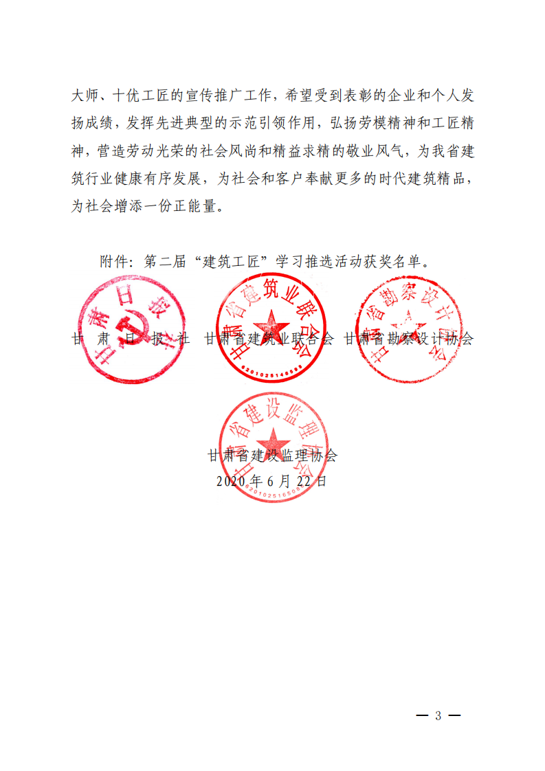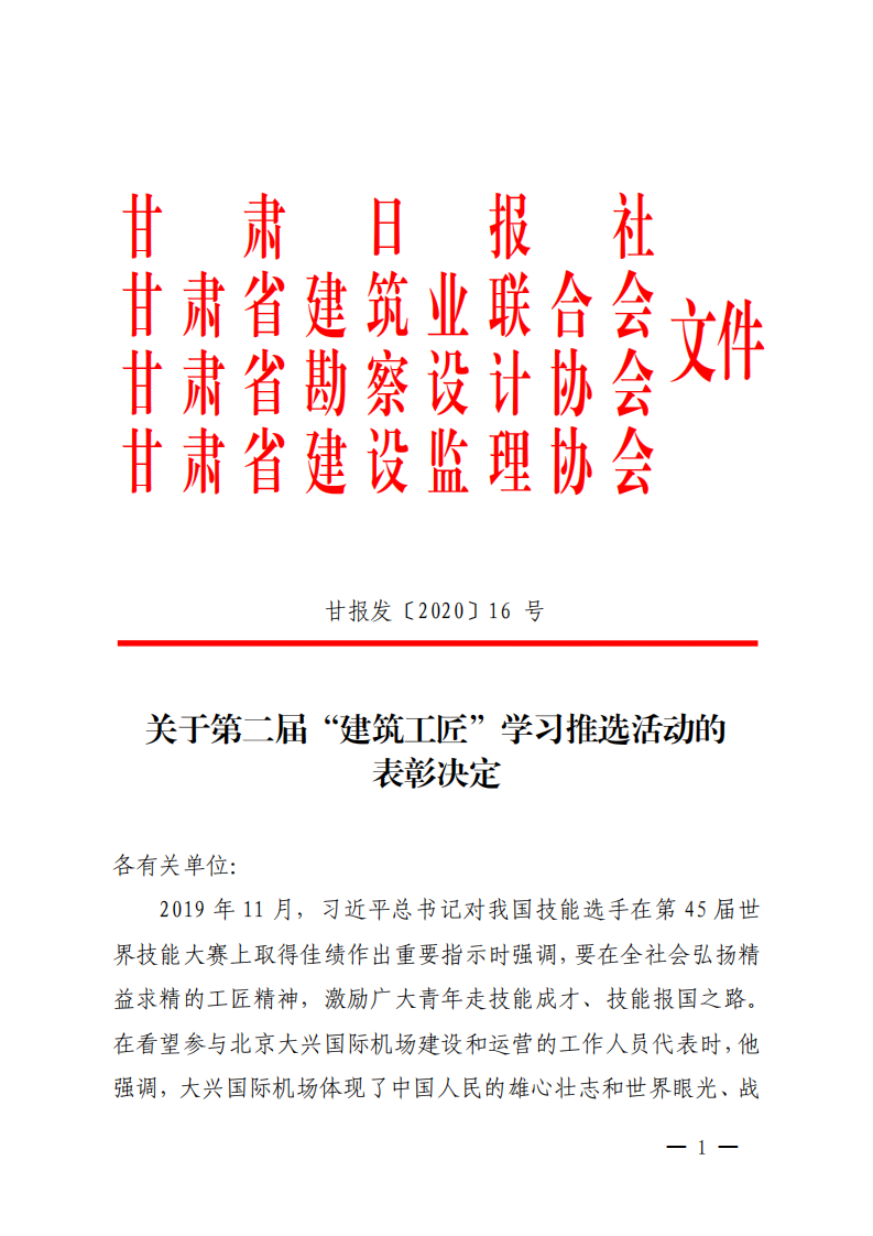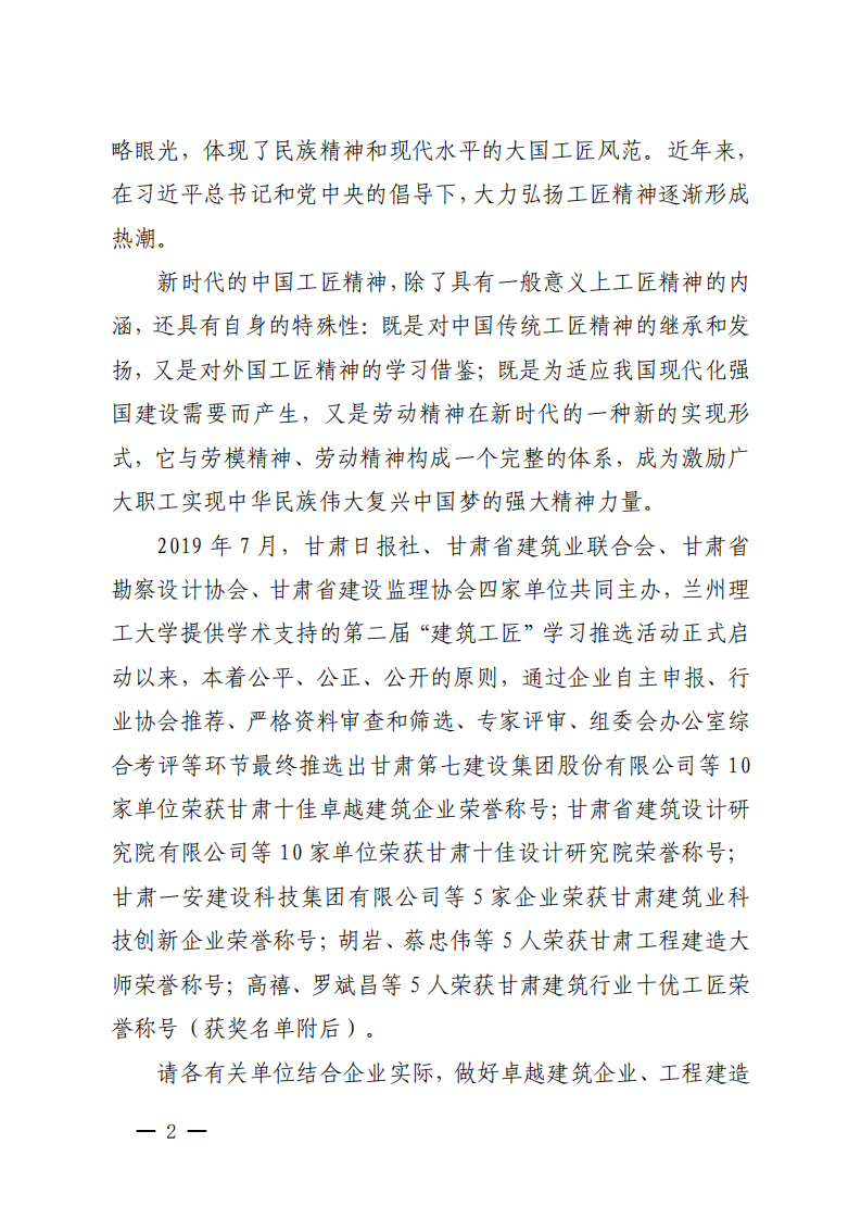 关于第二届“建筑工匠”学习推选活动的表彰决定