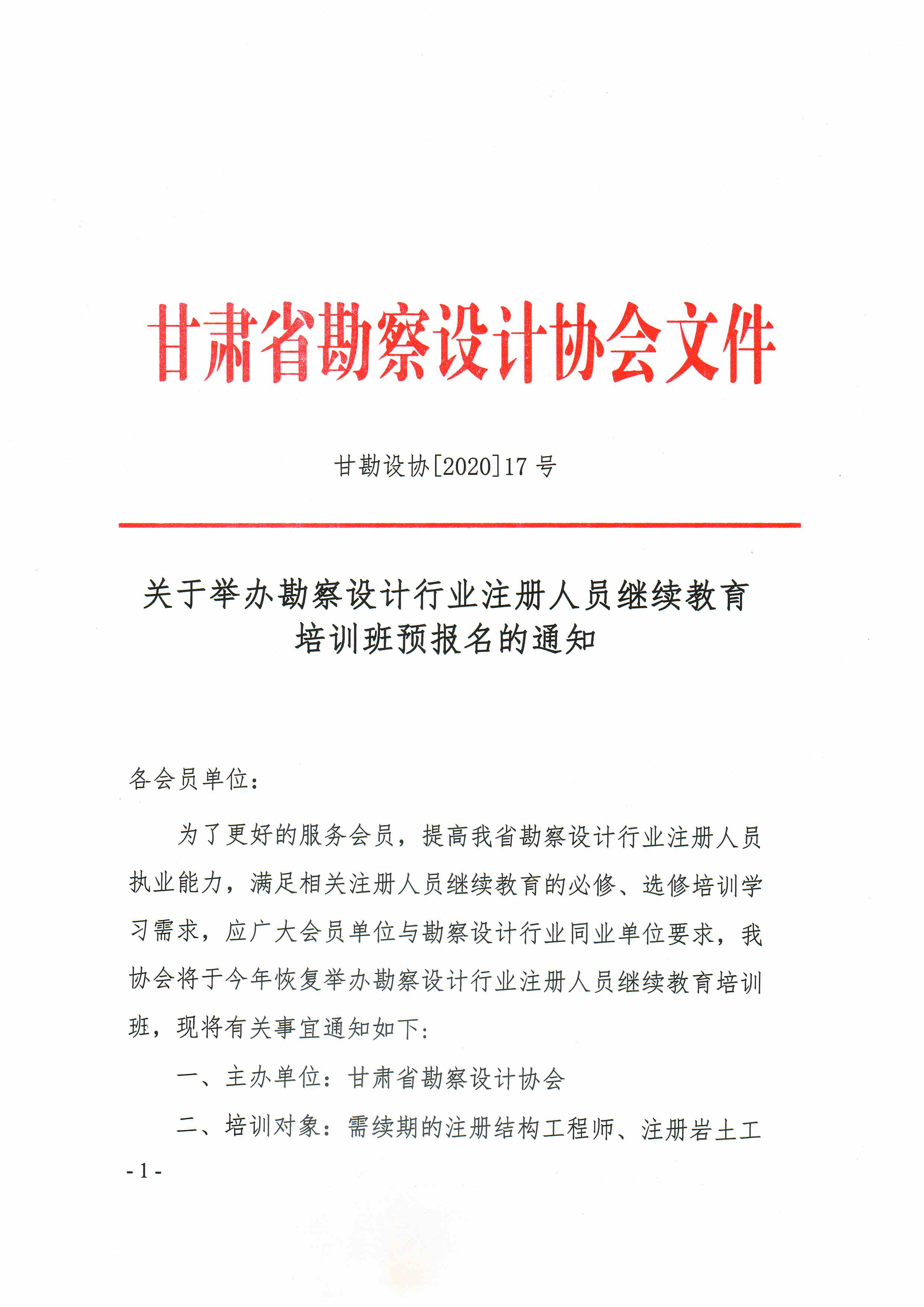 关于举办勘察设计行业注册人员继续教育培训班预报名的通知