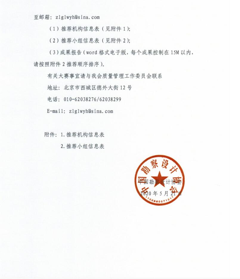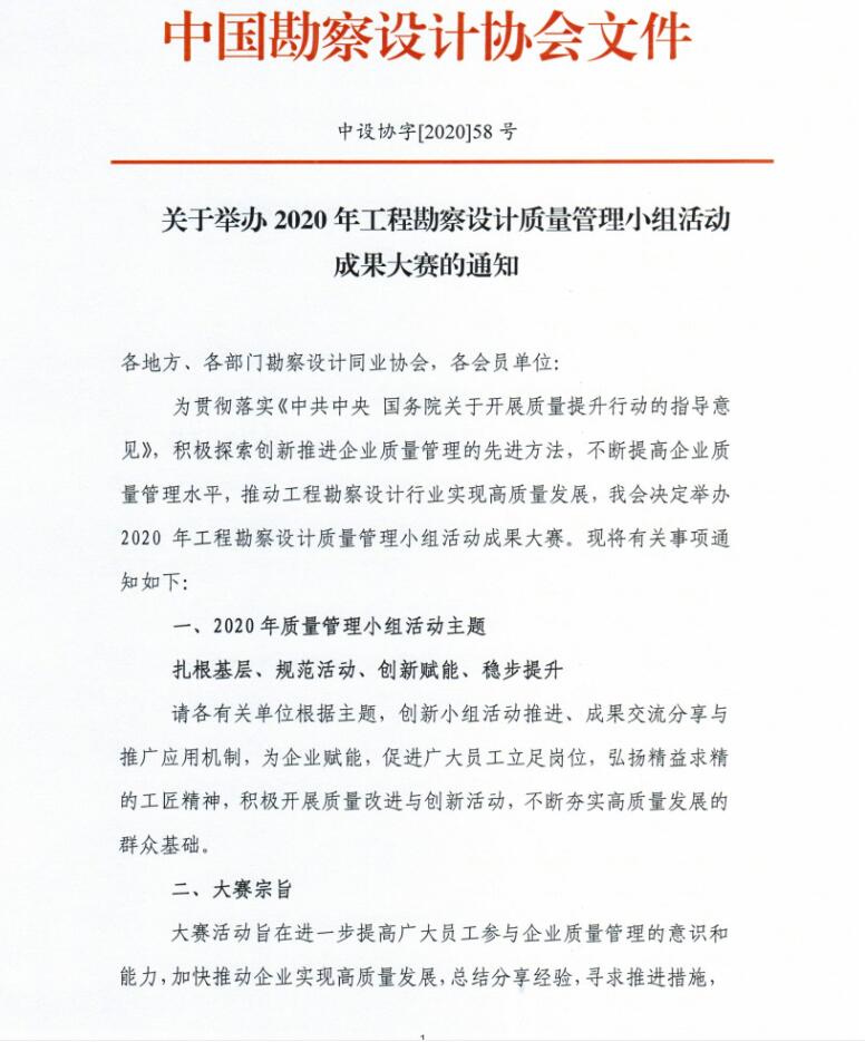 关于举办2020年工程勘察设计质量管理小组活动成果大赛的通知