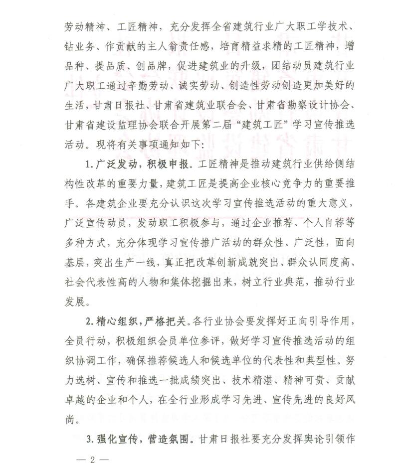 关于 开展第二届“建筑工匠”学习宣传推选活动的通知