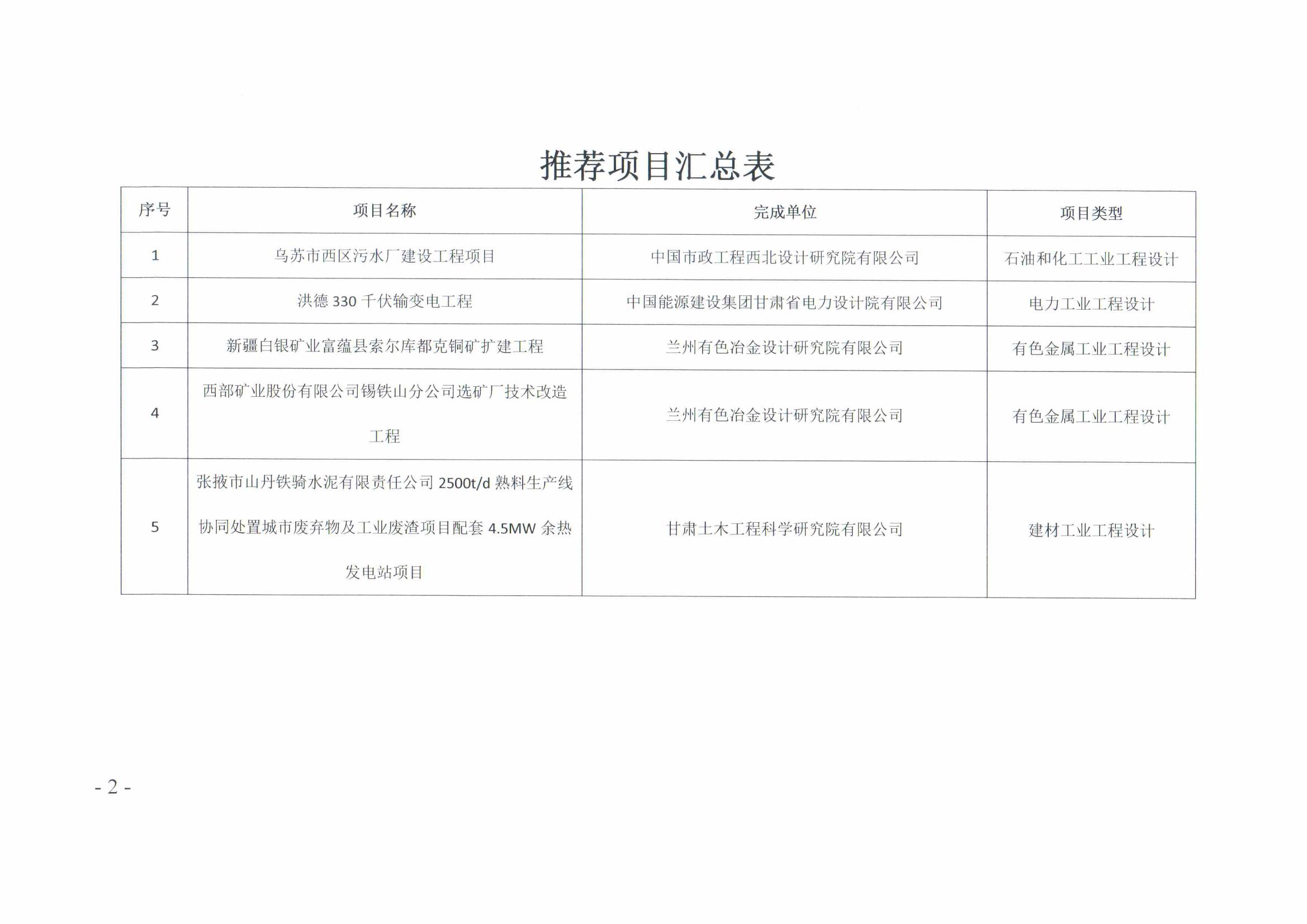 关于公示推荐申报中国勘察设计协会2021年度工程勘察建筑设计行业和市政公用工程优秀勘察 设计奖(工业奖)预推荐项目的通知