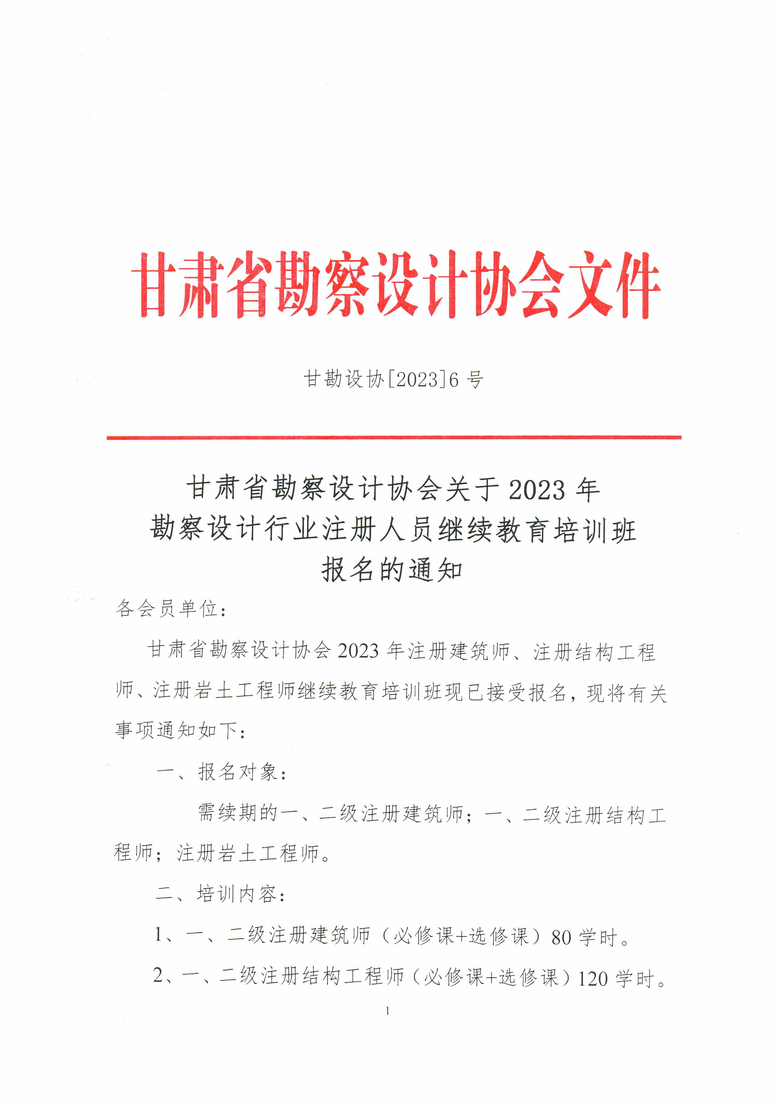 关于2023年勘察设计行业注册人员继续教育培训班报名的通知