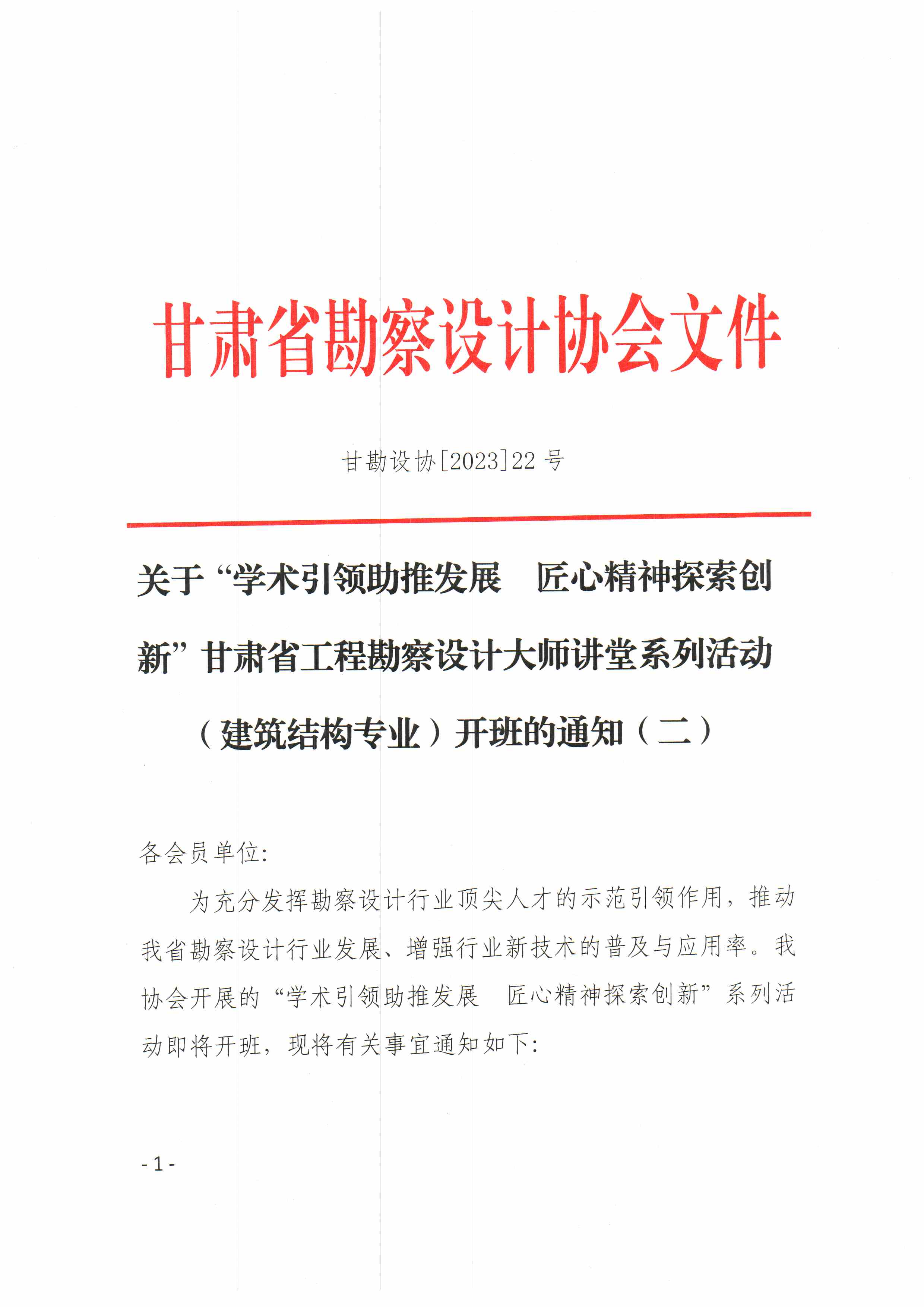 关于“学术引领助推发展 匠心精神探索创新”甘肃省工程勘察设计大师讲堂系列活动(建筑结构专业)开班的通知(二)
