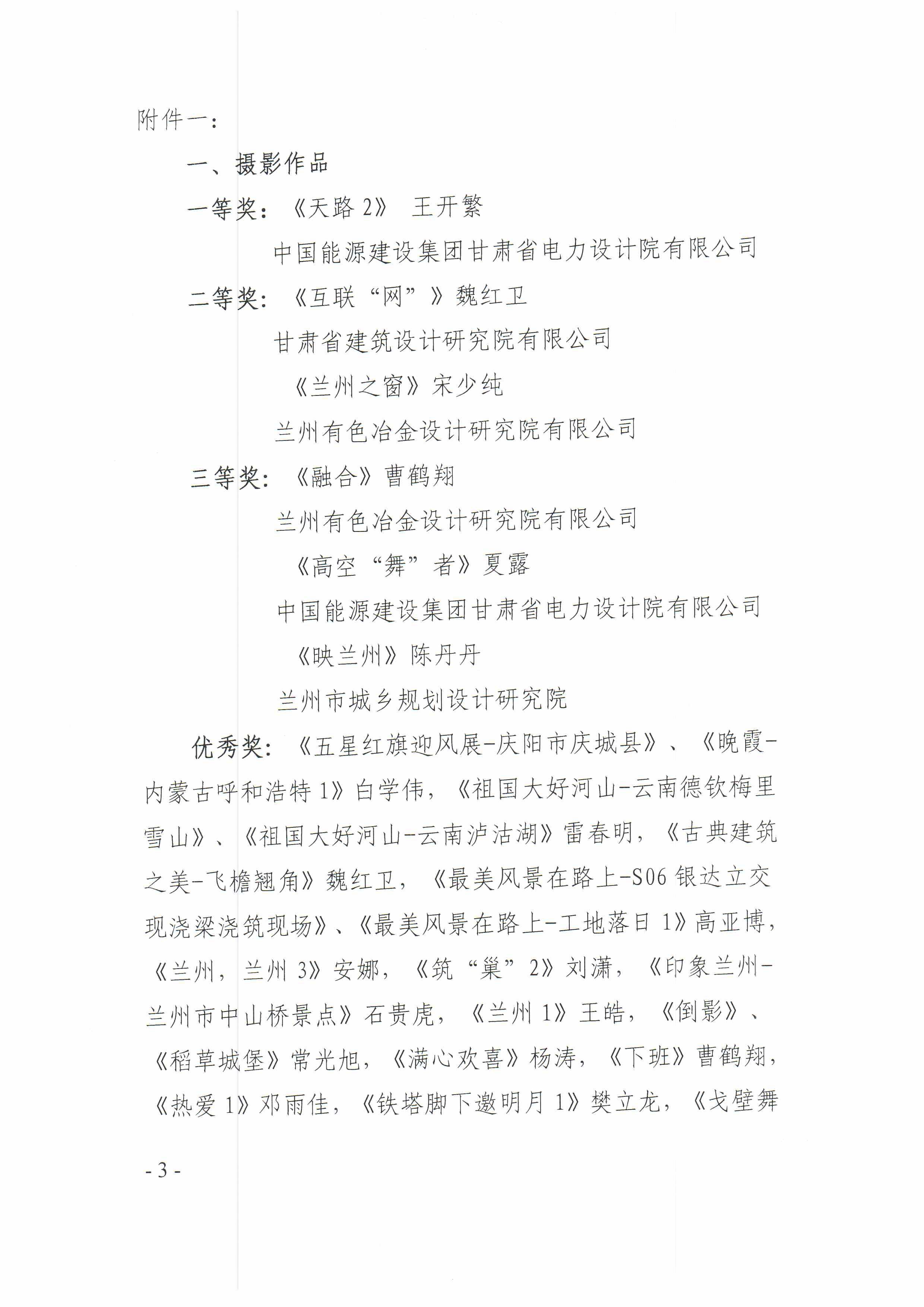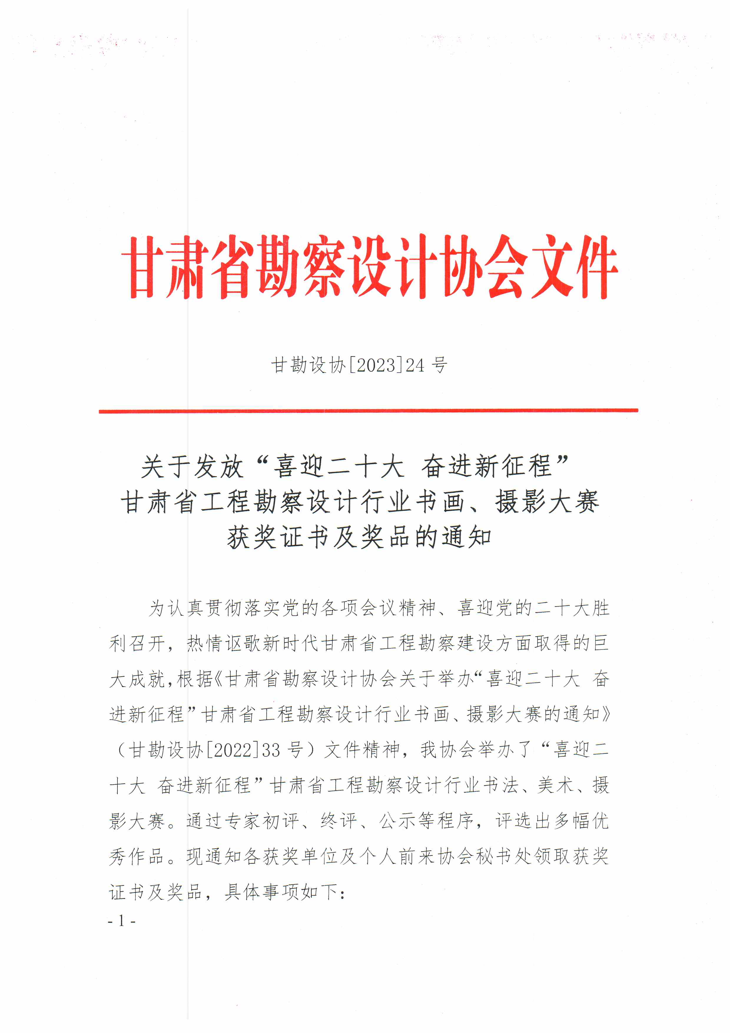 关于发放“喜迎二十大 奋进新征程”甘肃省工程勘察设计行业书画、摄影大赛获奖证书及奖品的通知