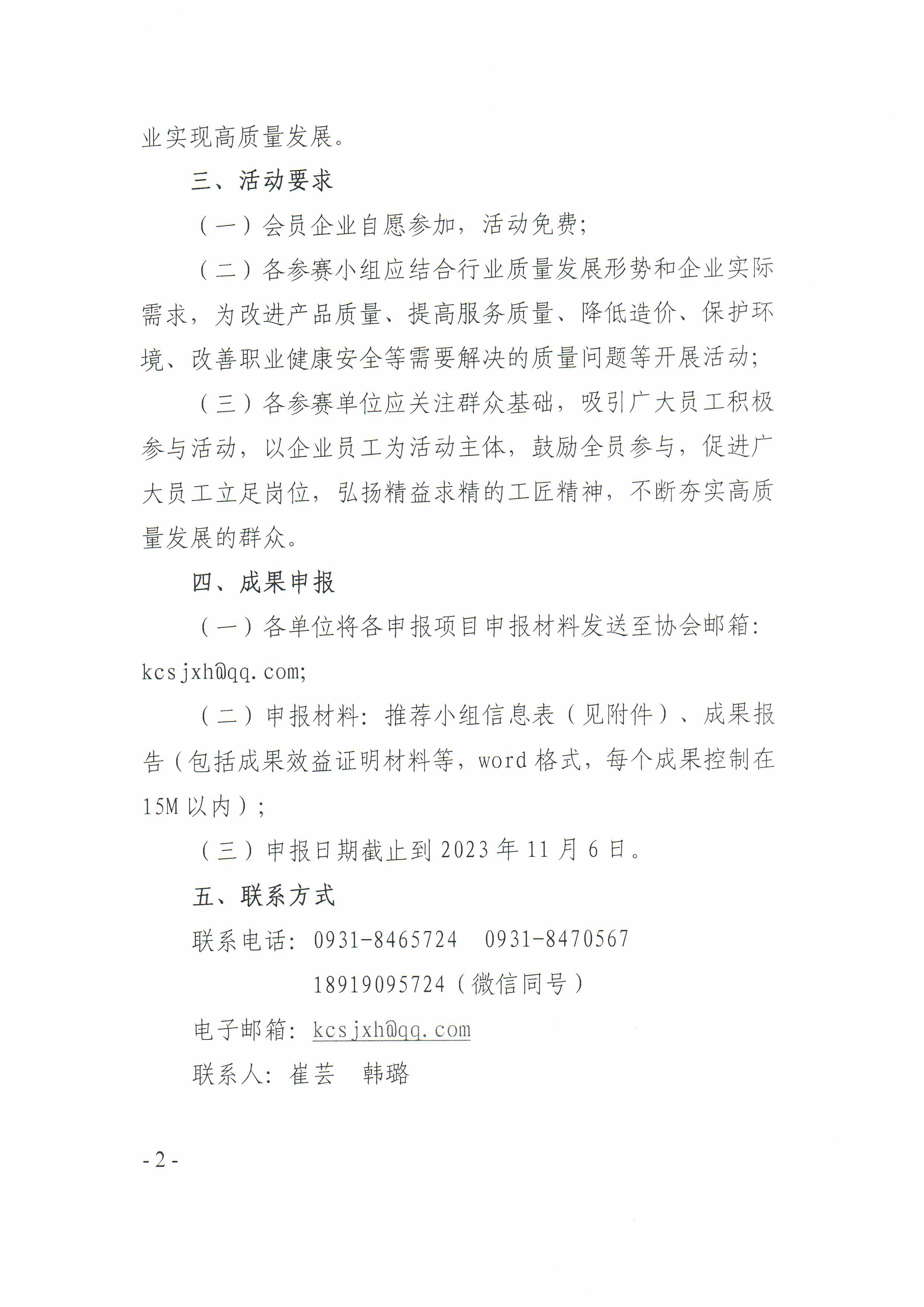 关于推荐2023年工程勘察设计质量管理小组活动成果的通知
