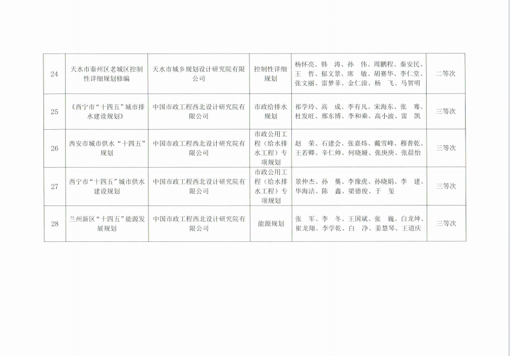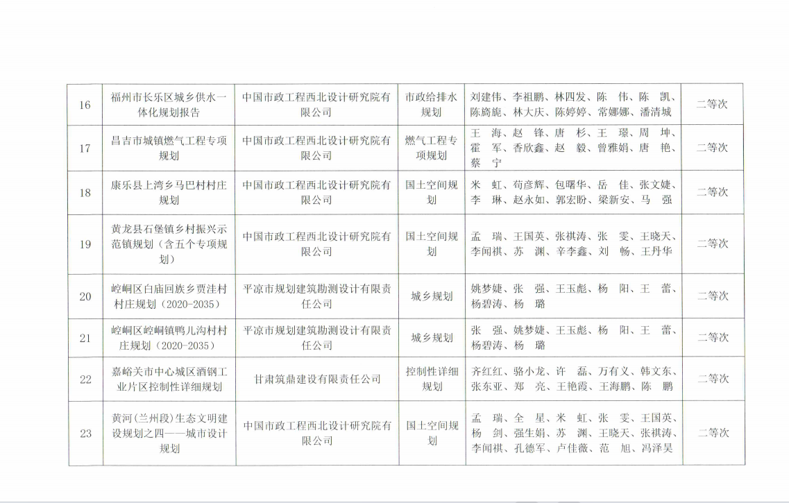 关于公示2023年度甘肃省城市规划设计成果等次评定结果的通知