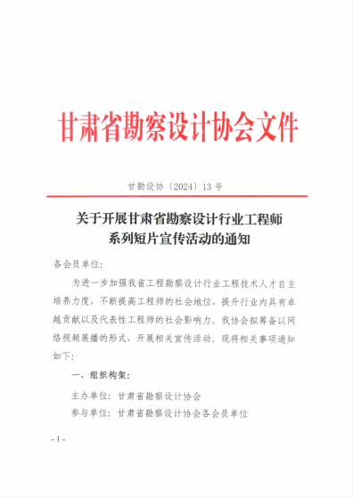 关于开展甘肃省勘察设计行业工程师系列短片宣传活动的通知