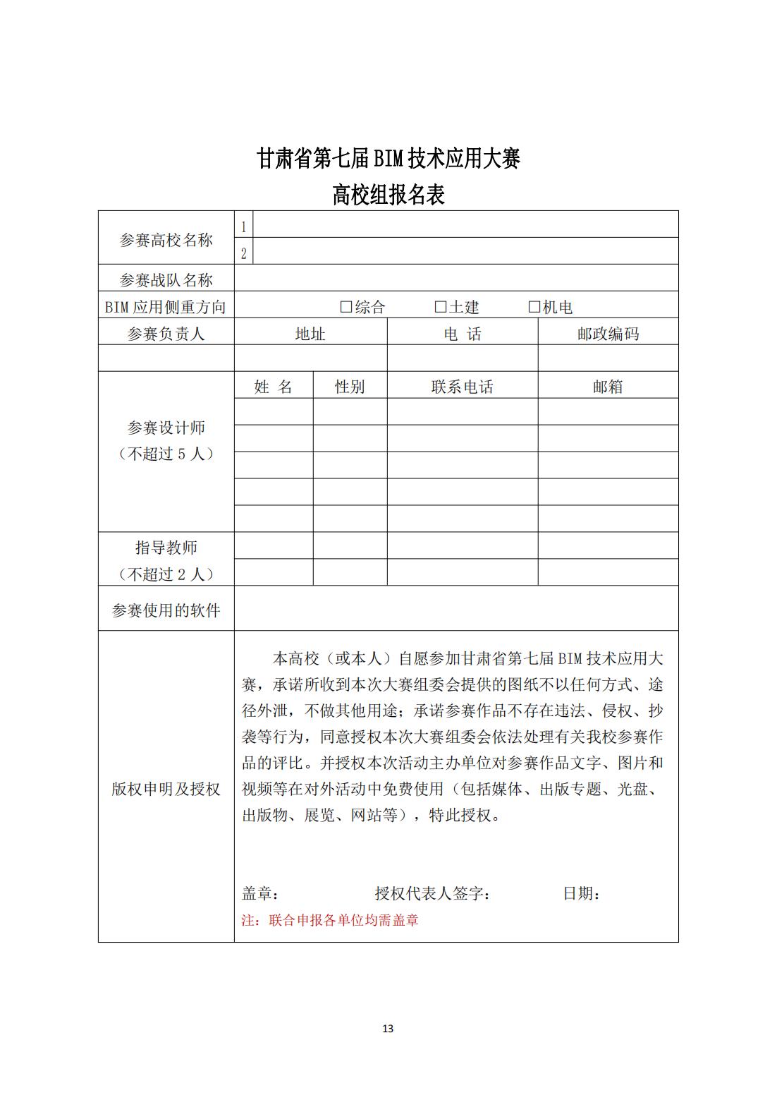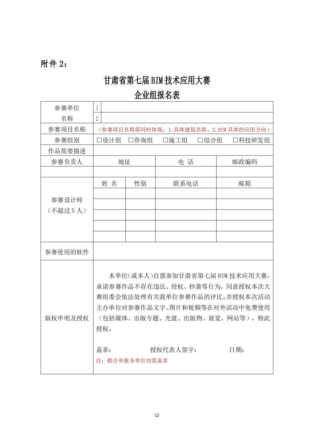 附件2:甘肃省第七届BIM技术应用大赛参赛报名表.docx