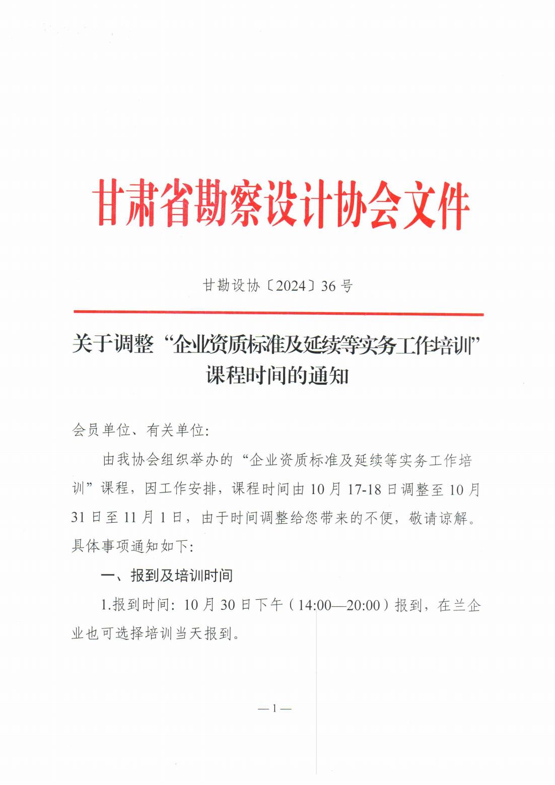 关于调整“企业资质标准及延续等实务工作培训” 课程时间的通知