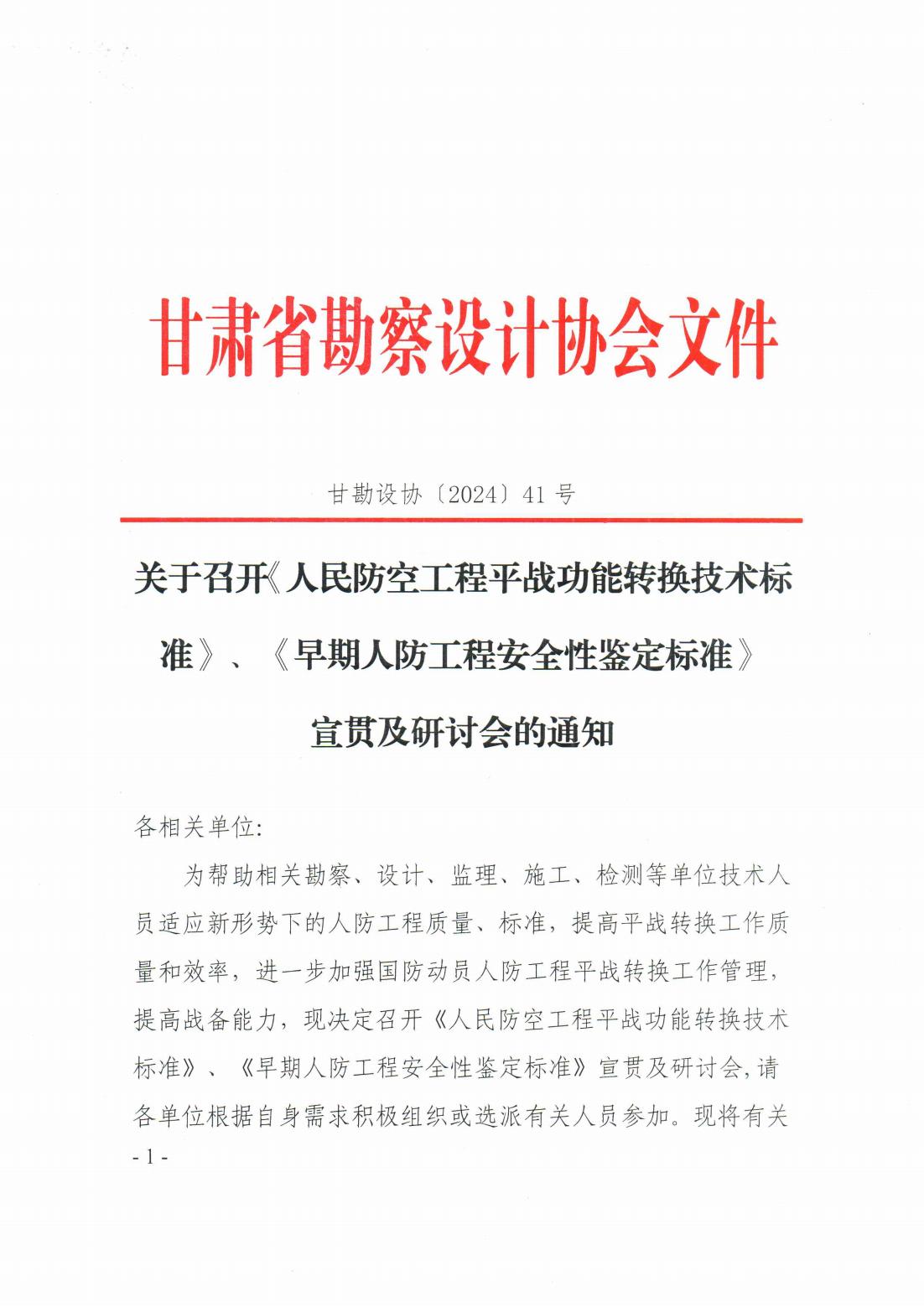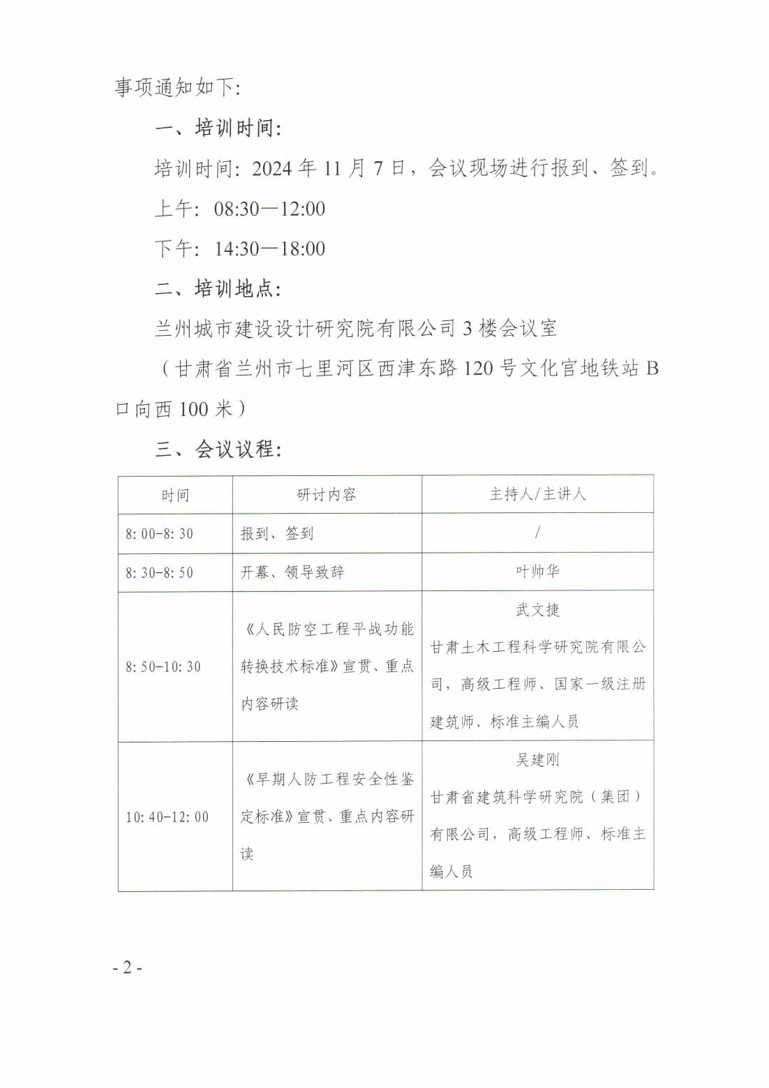 关于召开《人民防空工程平战功能转换技术标 准》、《早期人防工程安全性鉴定标准》 宣贯及研讨会的通知