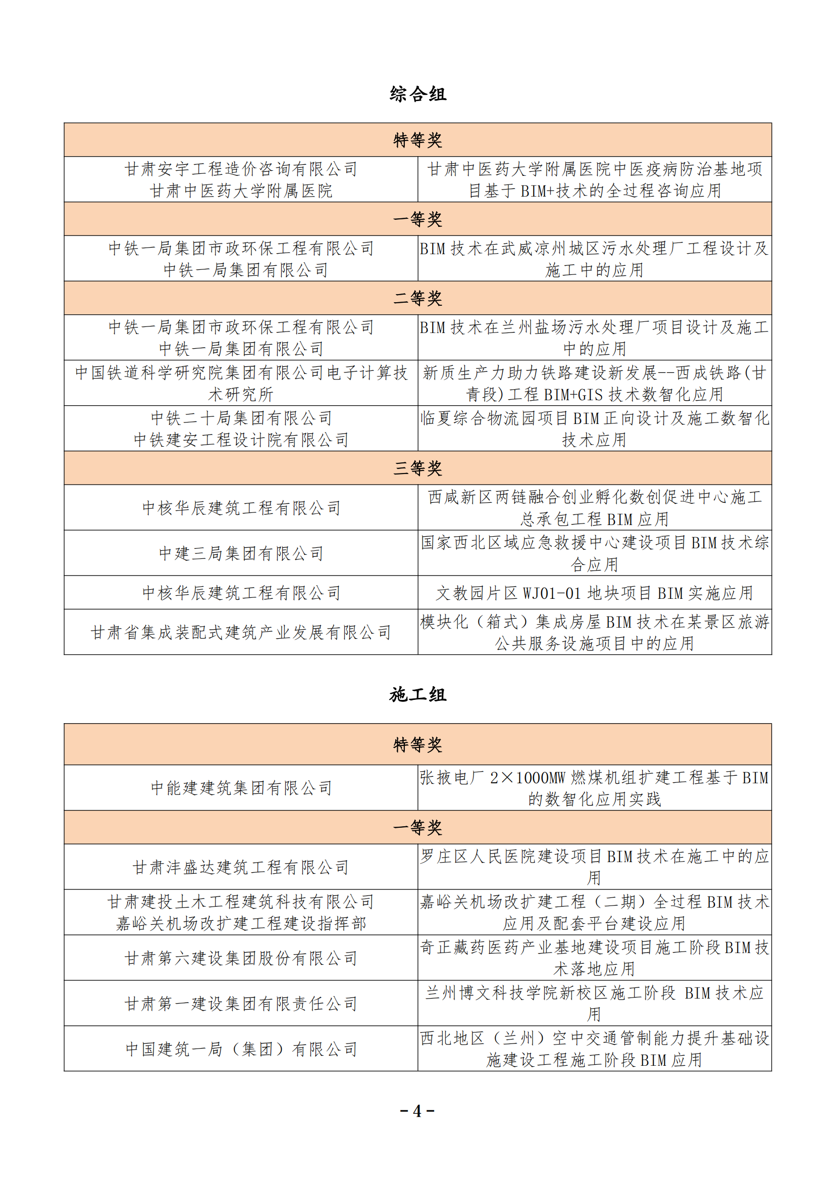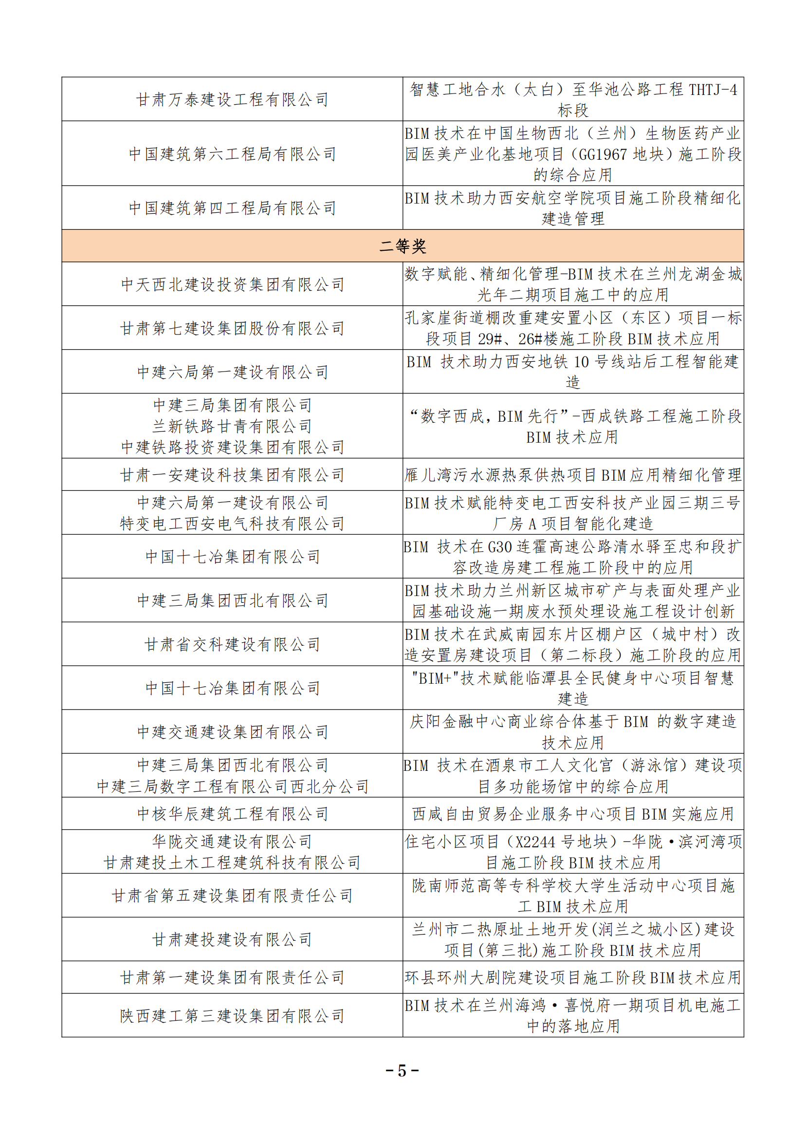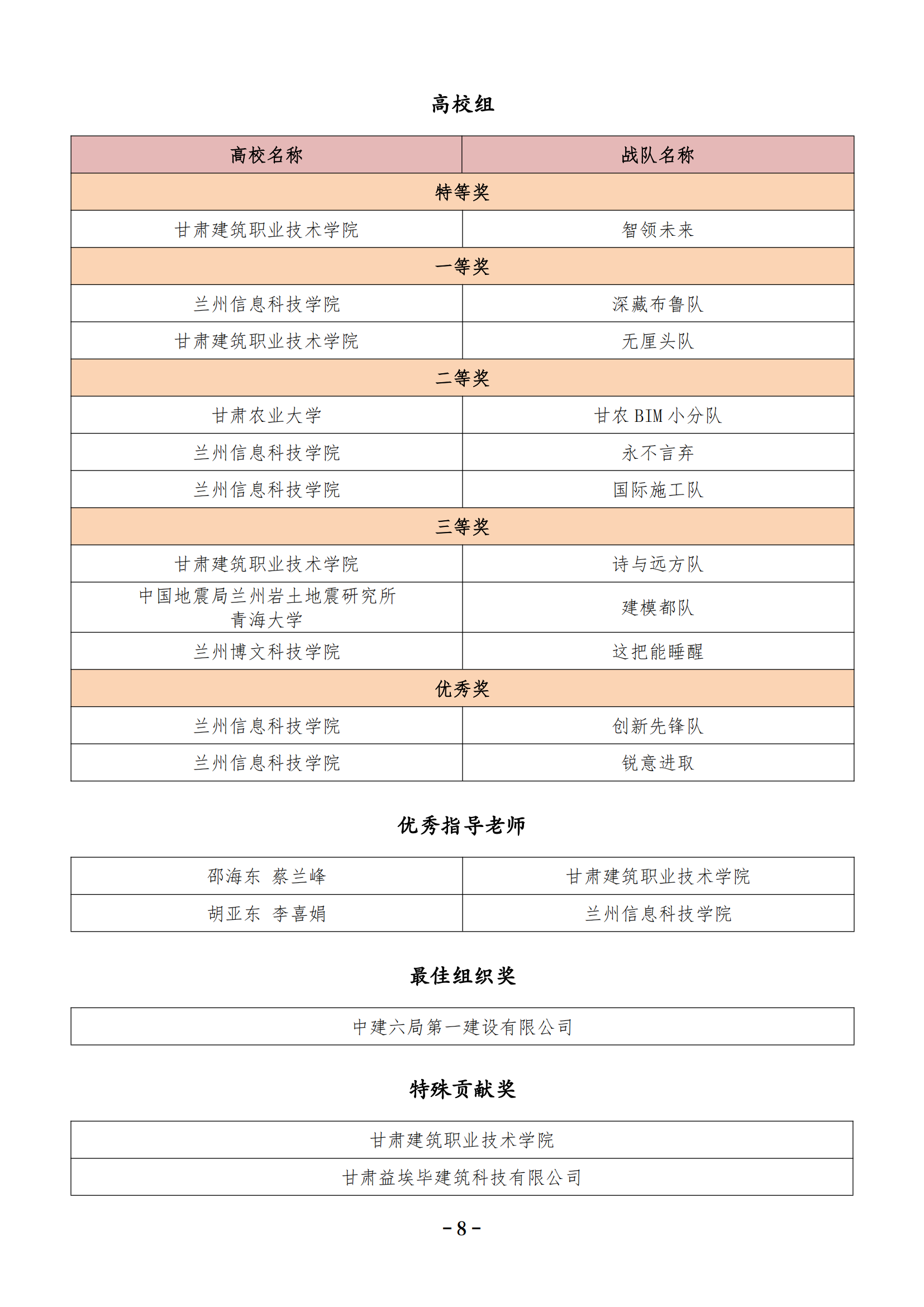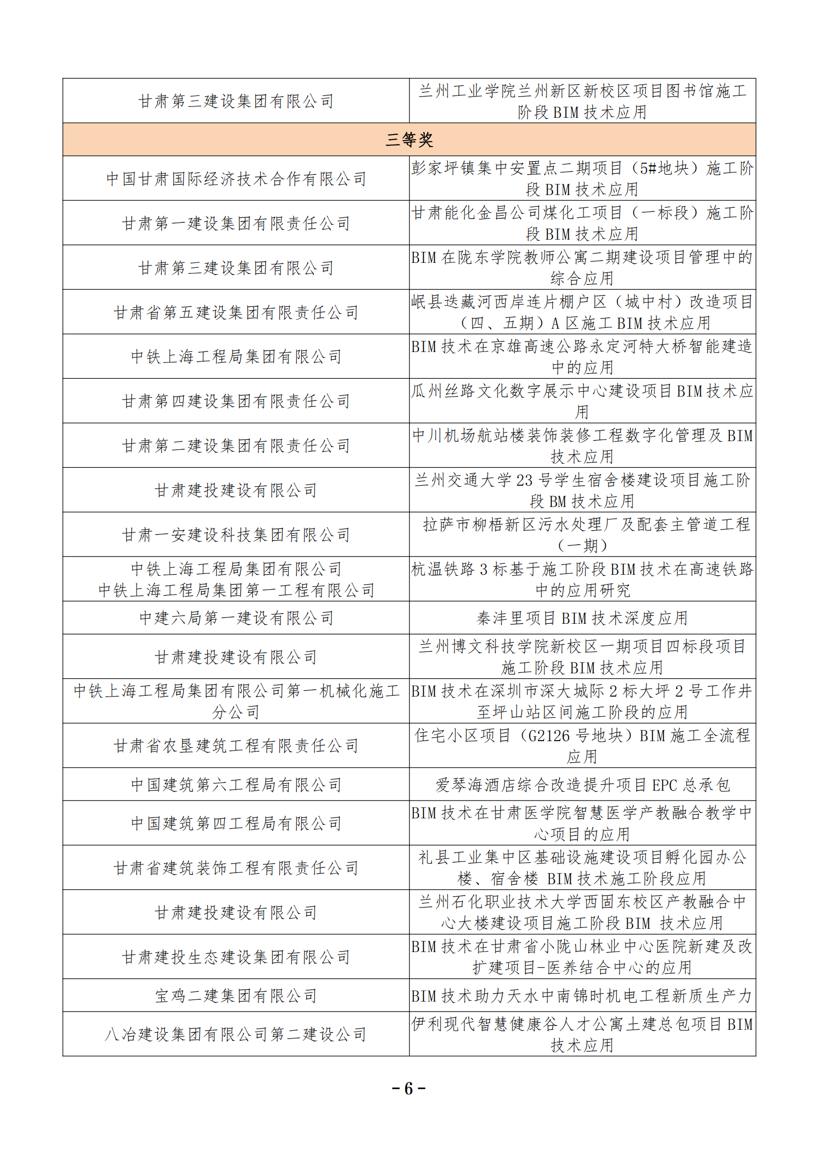 关于公布甘肃省第七届BIM技术应用大赛获奖名单的通知
