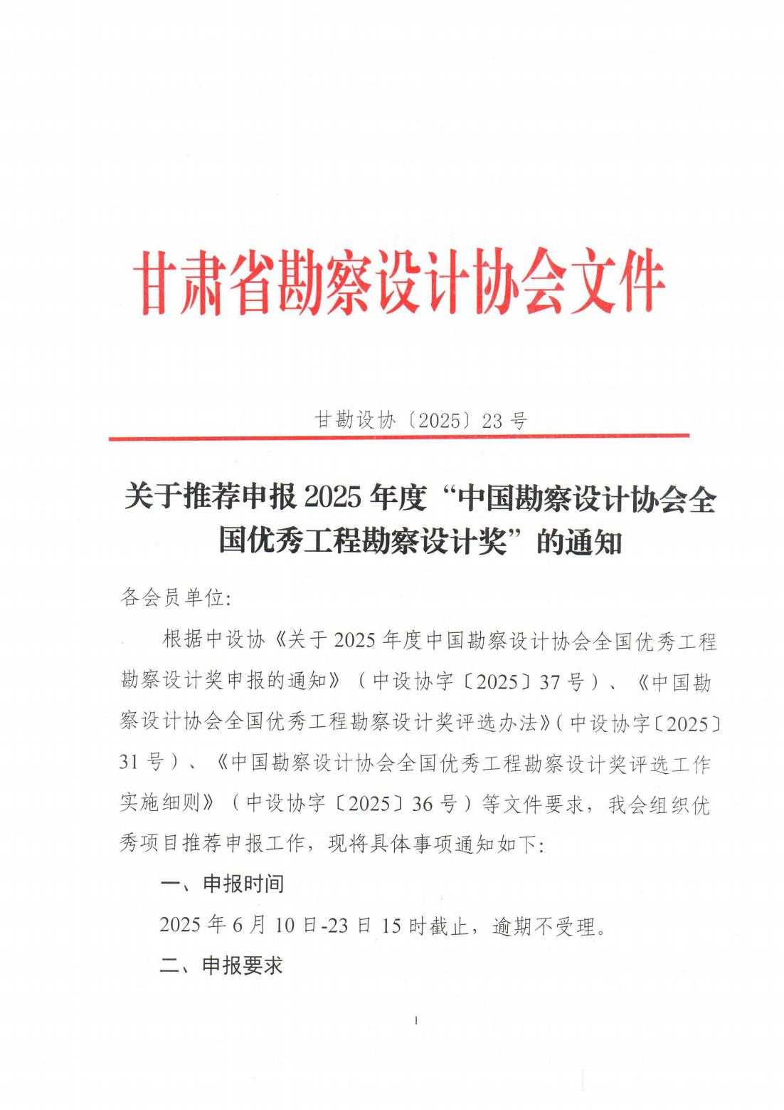 中设协字〔2025〕37号关于2025年度中国勘察设计协会全国优秀工程勘察设计奖申报的通知.pdf
