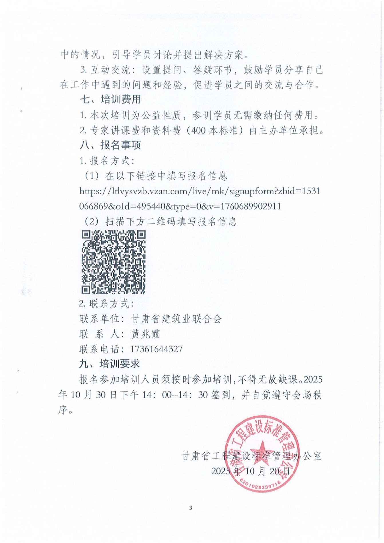 关于举办“甘肃省《好房子住宅评价标准》DB62/T 3325-2025宣贯培训班”的通知