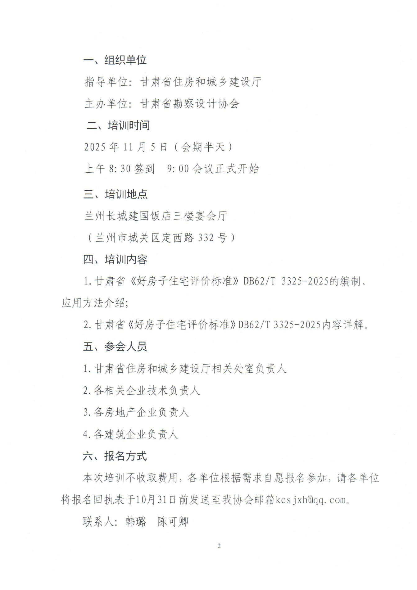 关于举办“甘肃省《好房子住宅评价标准》DB62/T 3325-2025宣贯培训班”的通知