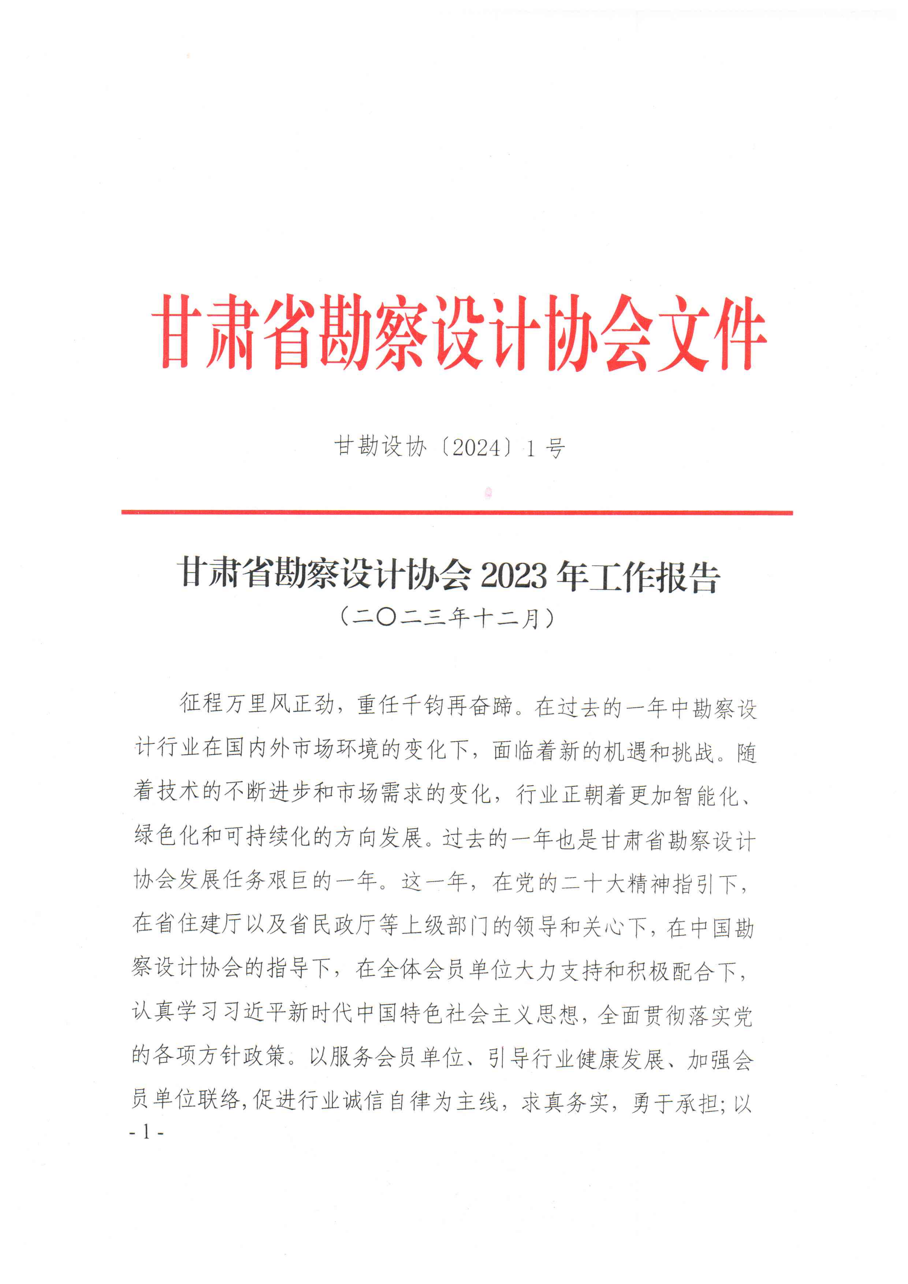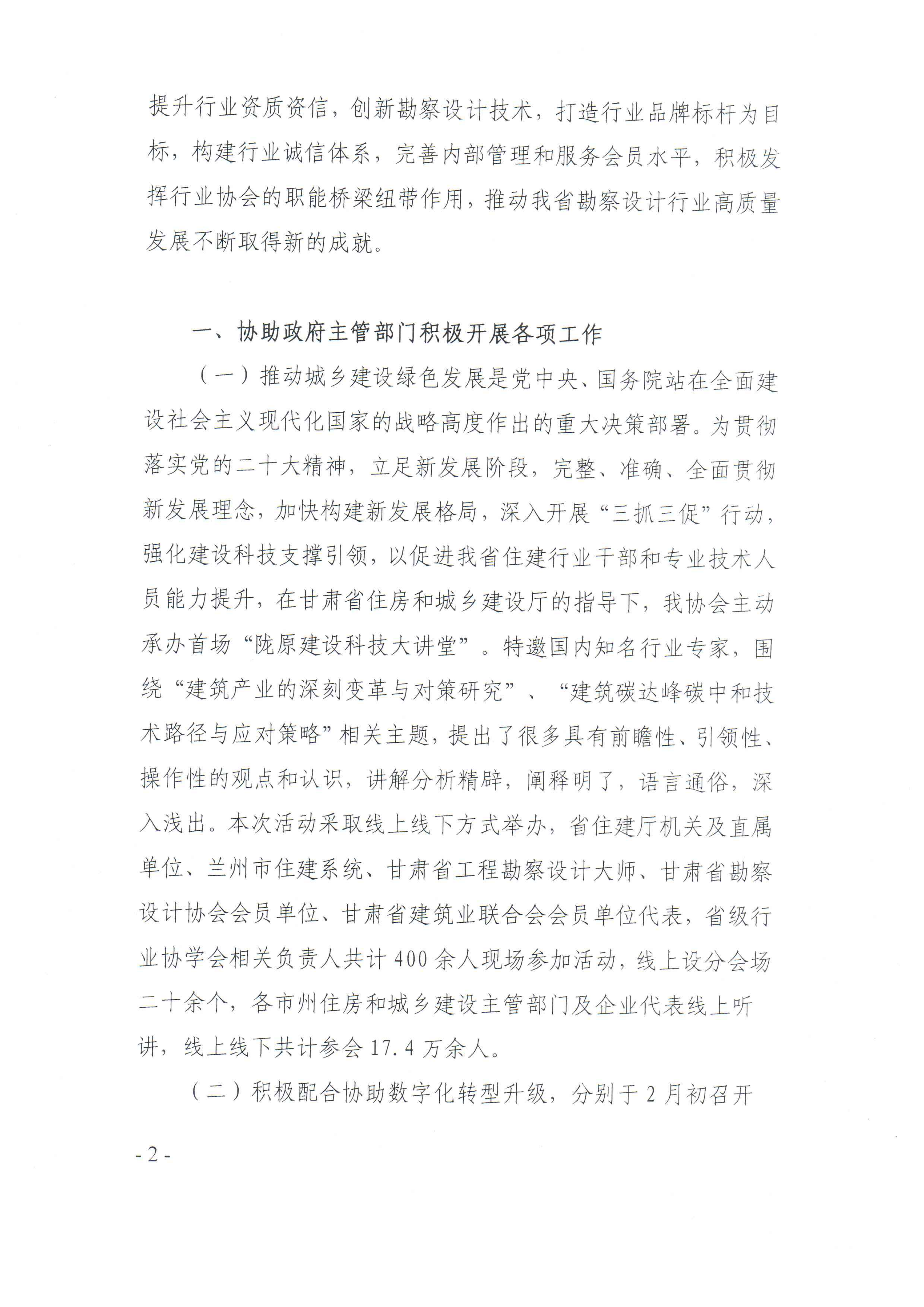 甘肃省勘察设计协会2023年工作报告