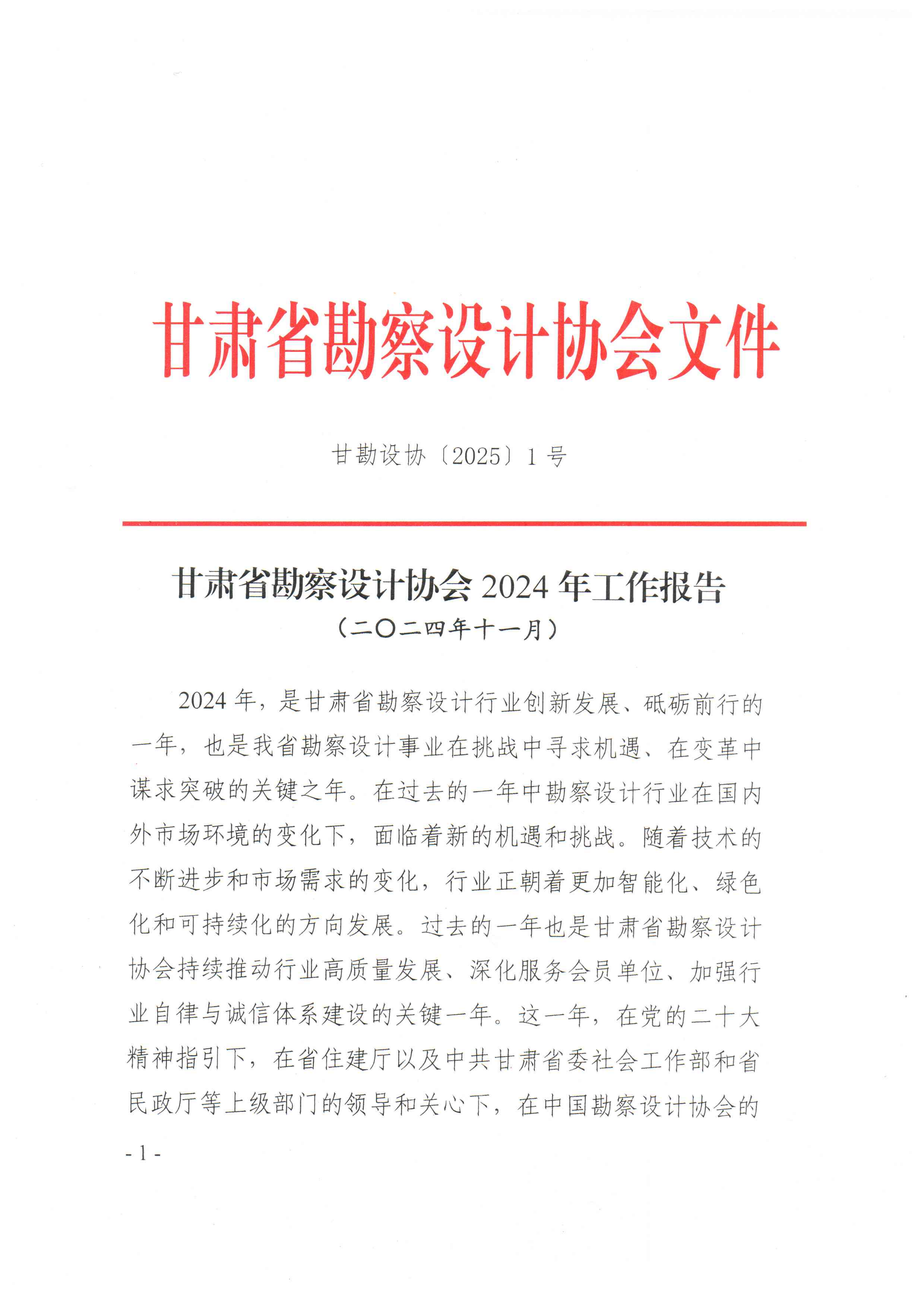 甘肃省勘察设计协会2024年工作报告