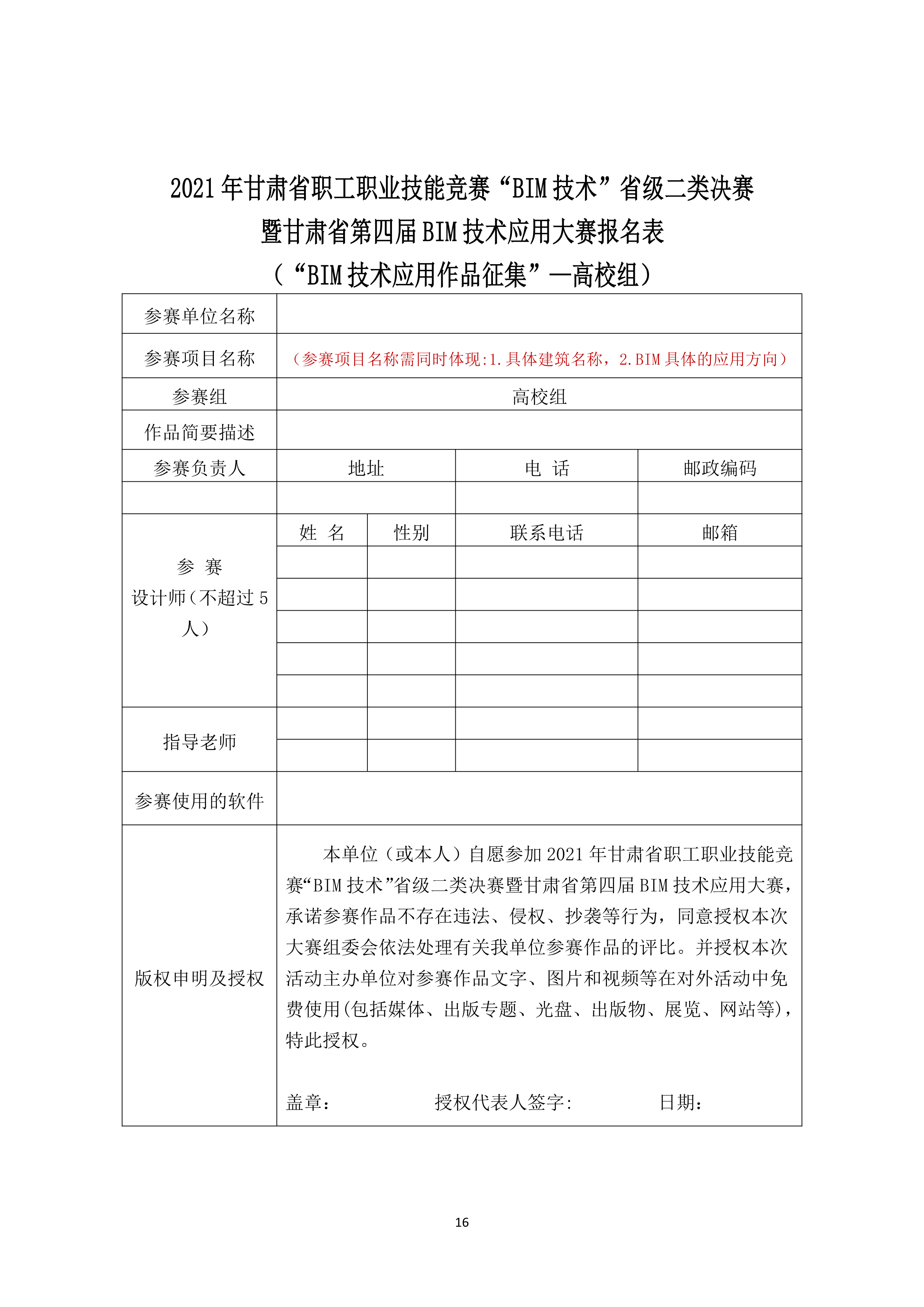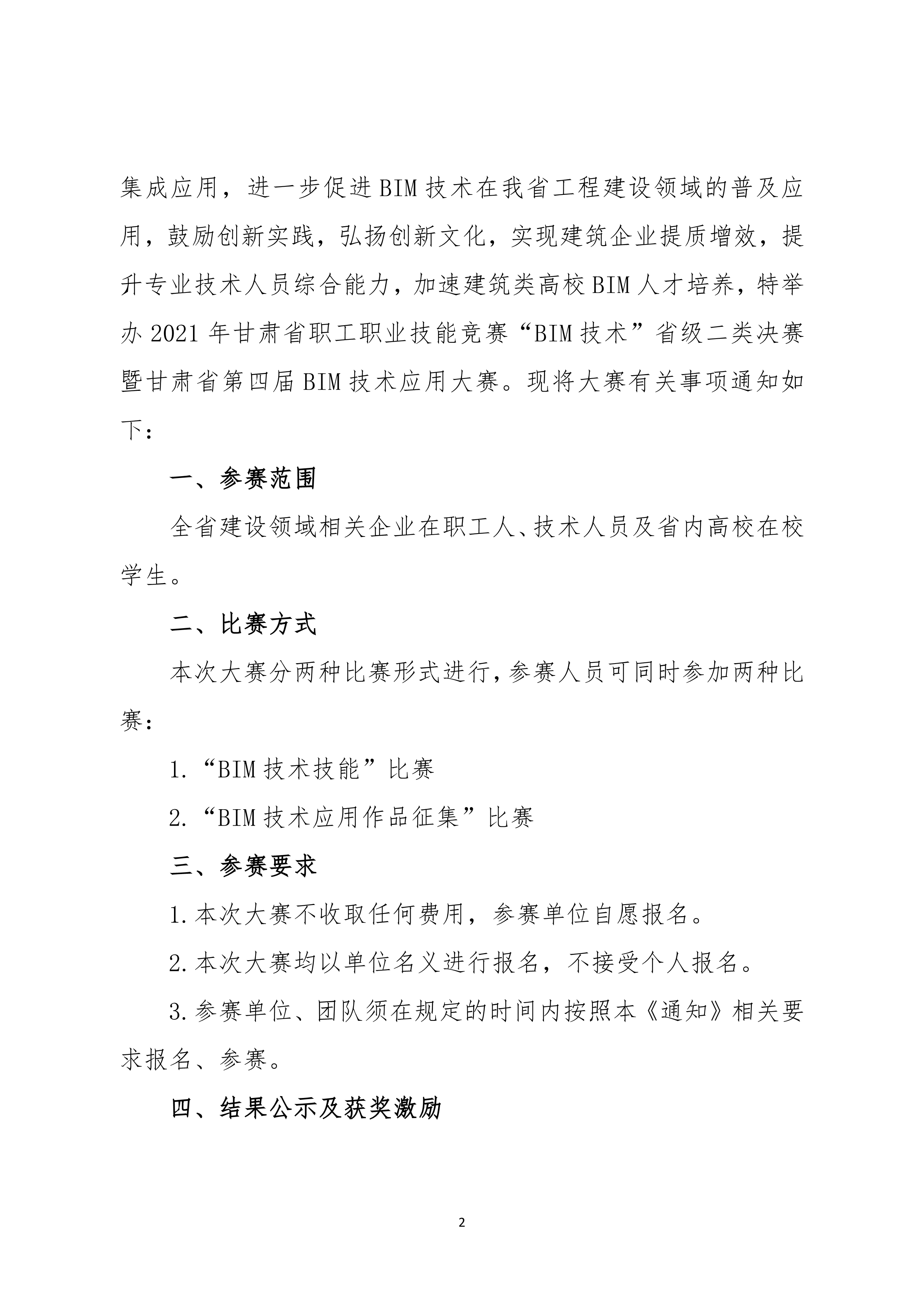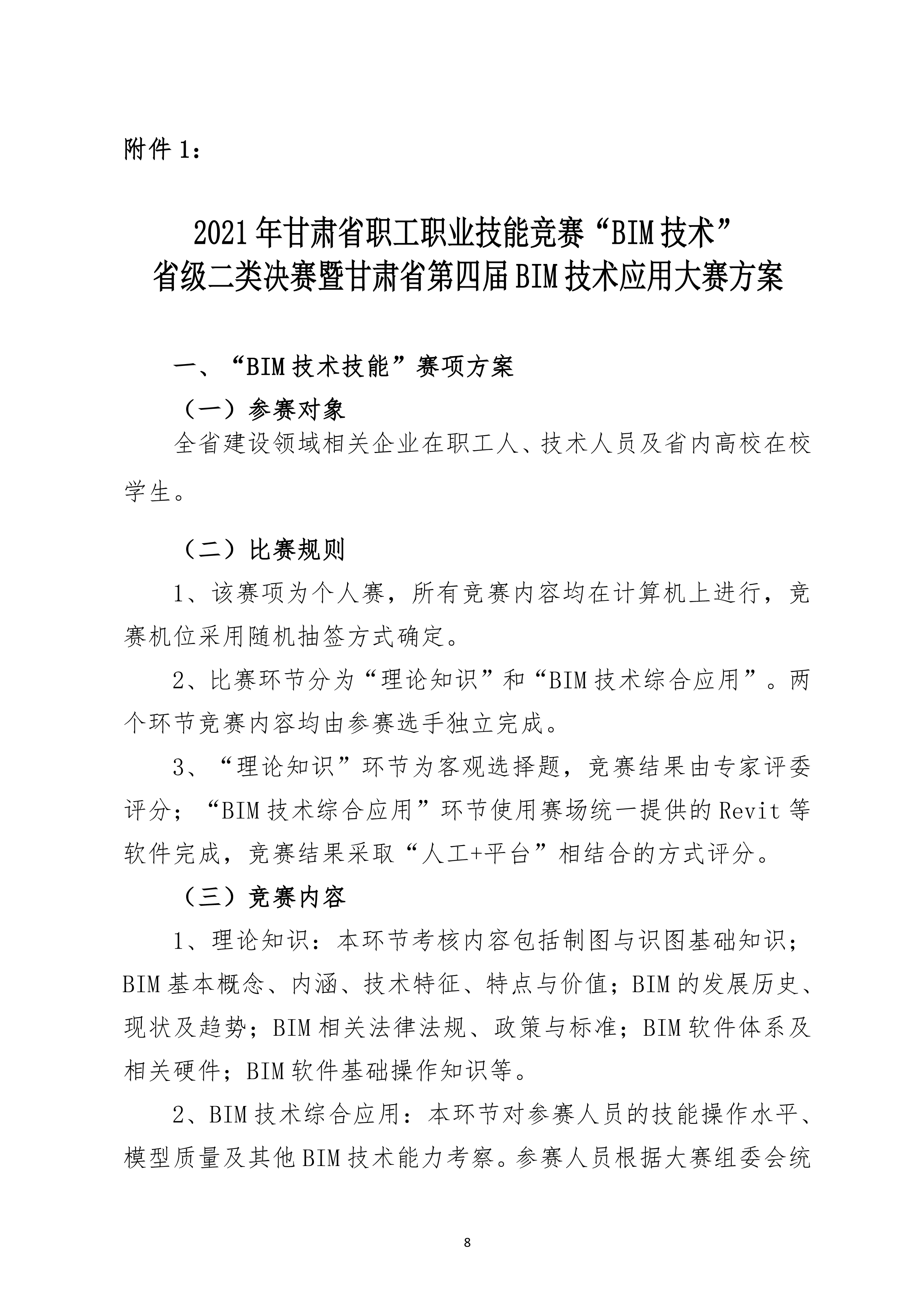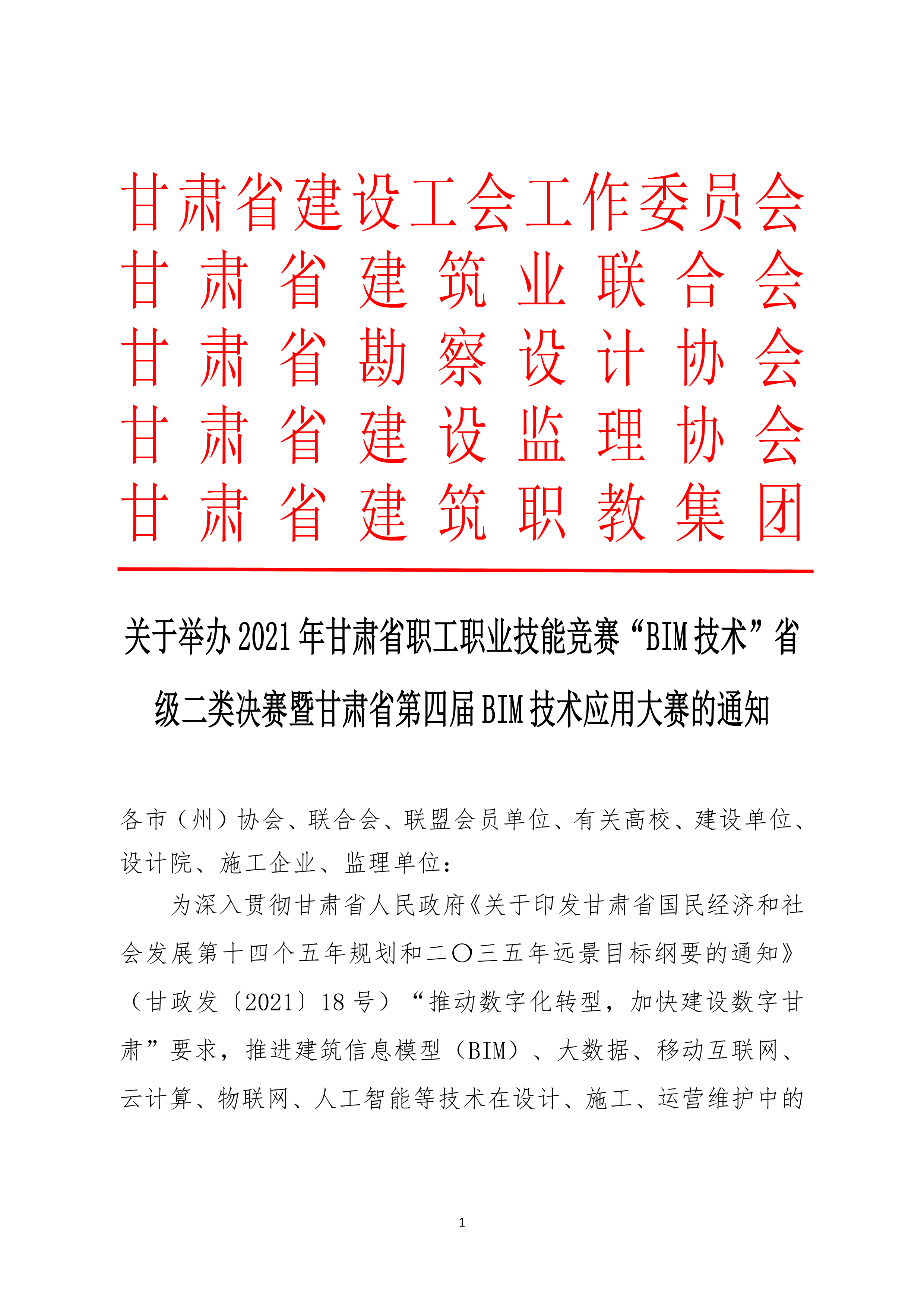 关于举办2021年甘肃职工职业技能竞赛“BIM技术”省级二类决赛暨甘肃省第四届BIM技术应用大赛的通知